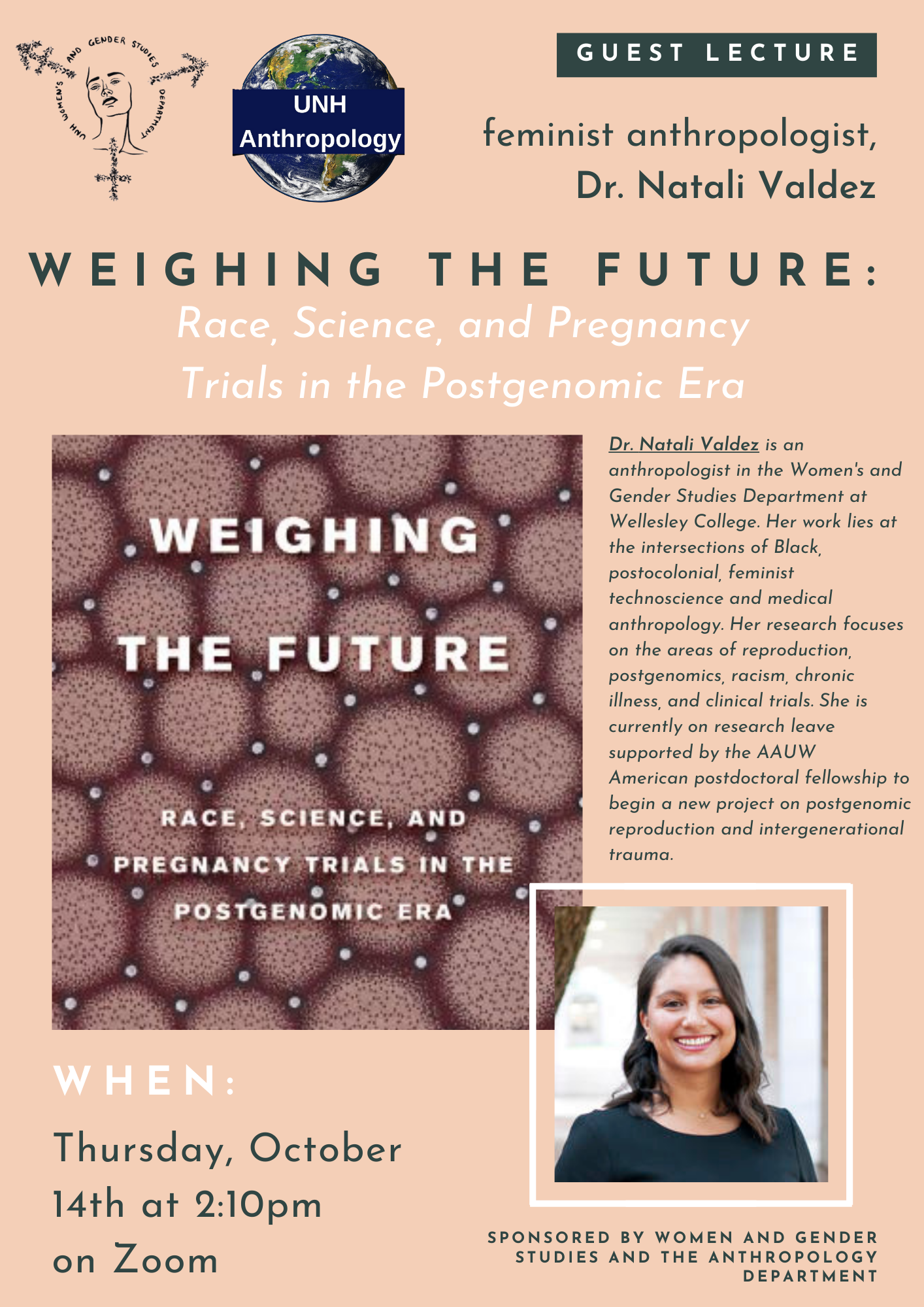 Natali Valdez is an anthropologist in the Women's and Gender Studies Department at Wellesley College. Her work lies at the intersections of Black, postocolonial, feminist technoscience and medical anthropology. Her research focuses on the areas of reproduction, postgenomics, racism, chronic illness, and clinical trials. She is currently on research leave supported by the AAUW American postdoctoral fellowship to begin a new project on postgenomic reproduction and intergenerational trauma.